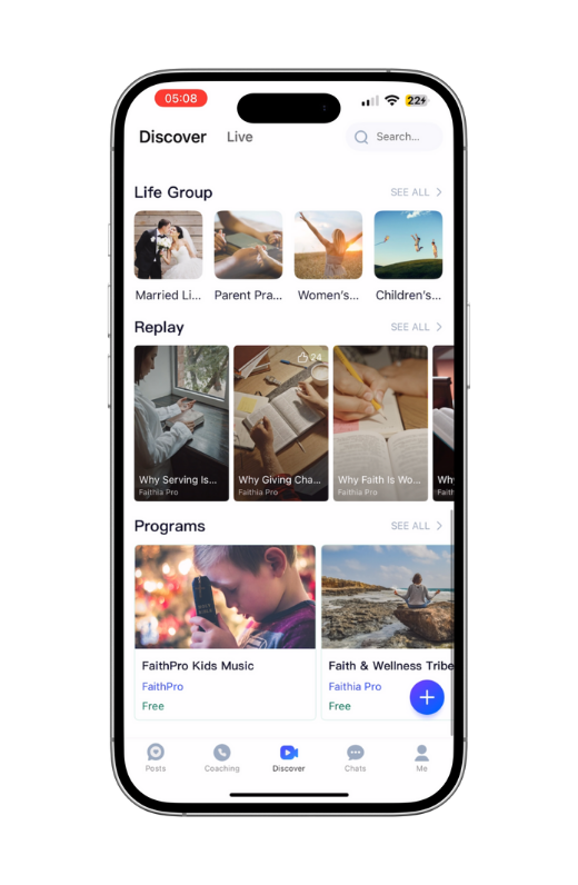 - Sermons, livestreams & devotionals Messaging, prayer wall & coaching tools